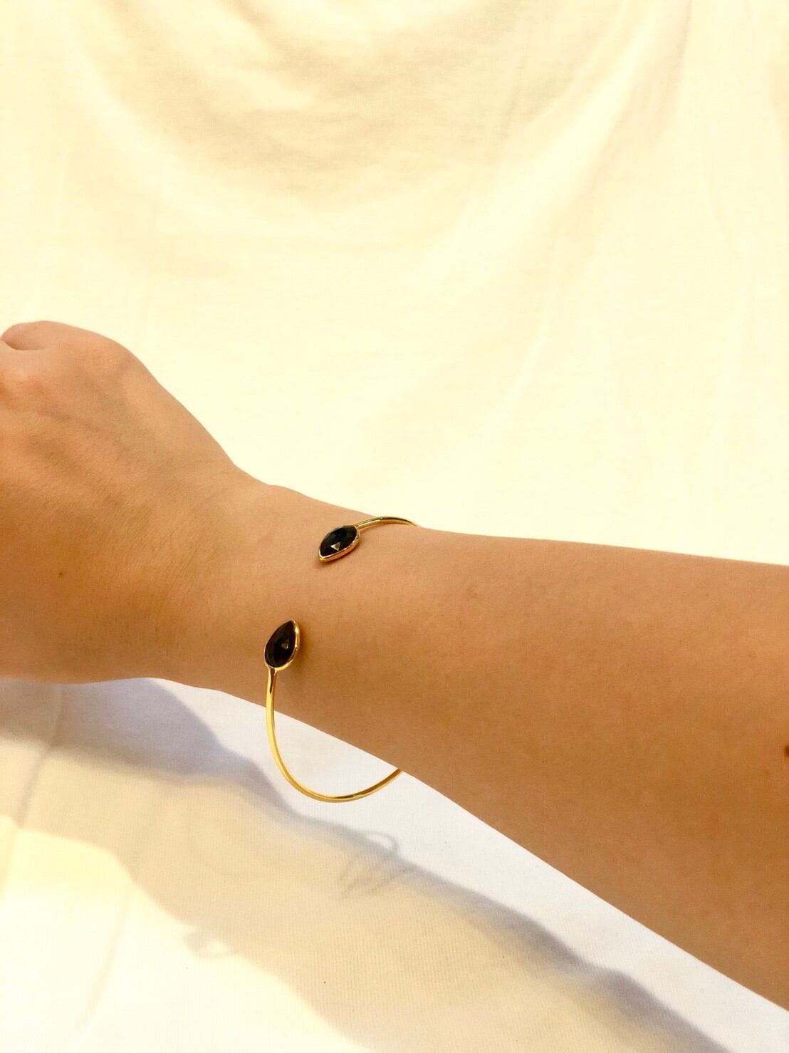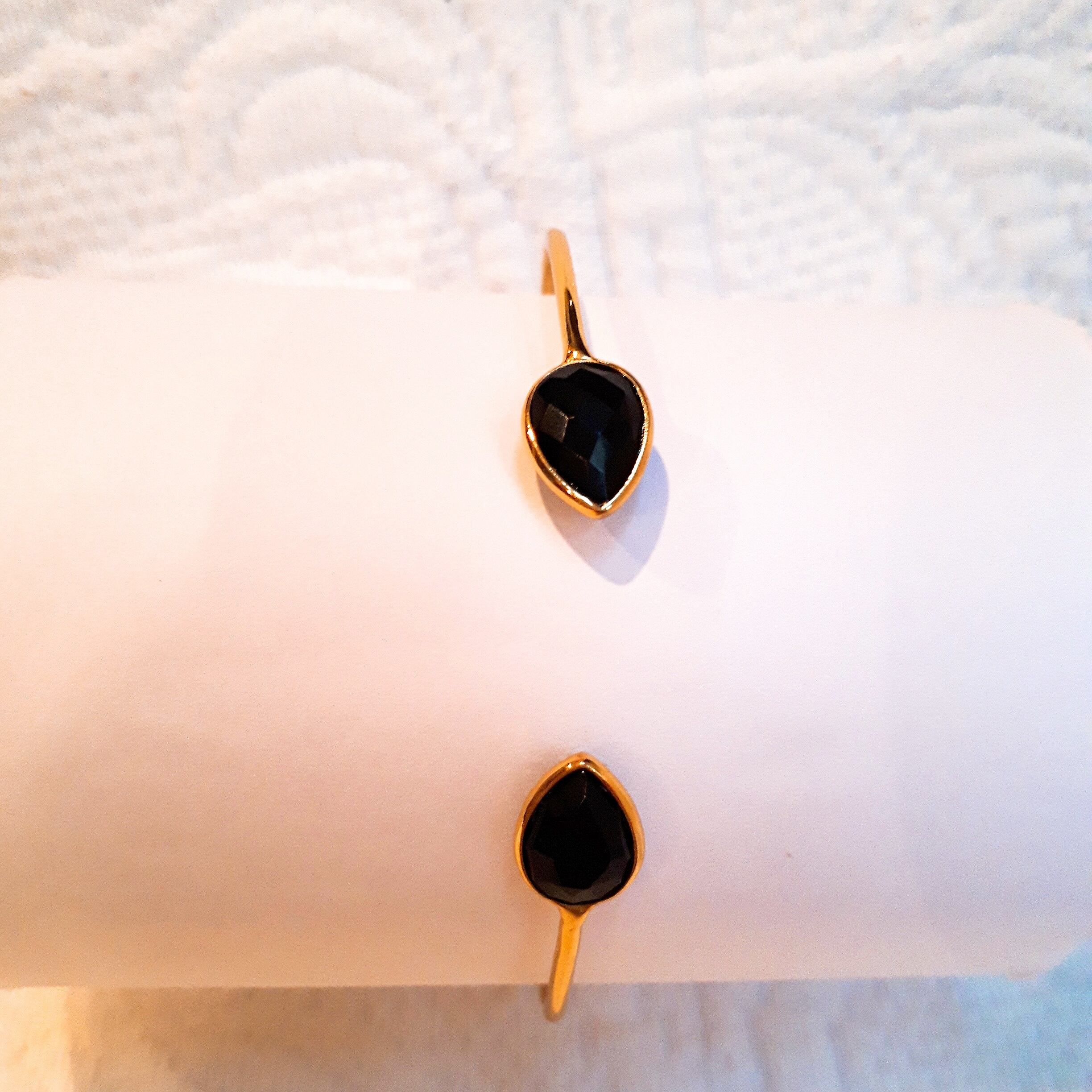 ティアドロップ型にカットされた大粒のブラックオニキスが入ったバングルです。