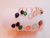 ティアドロップ型にカットされた大粒のブルーカルセドニーが入ったバングルです。