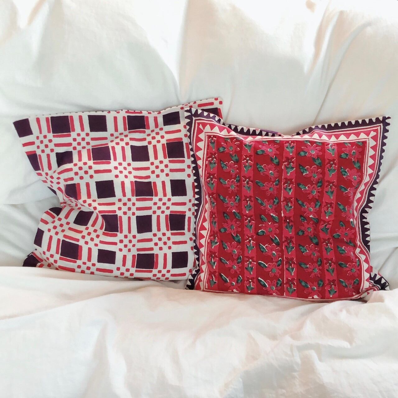 インドのハンドブロックプリント製品のブランド、キロルのクッションカバーです。
