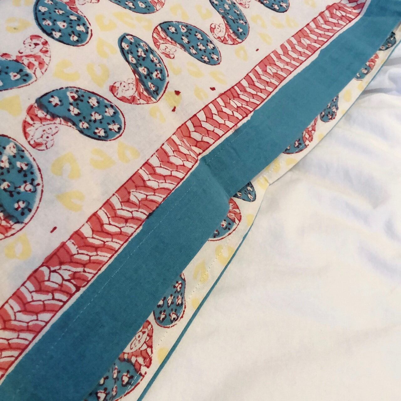 インドのハンドブロックプリント製品のブランド、ソーマの枕カバーです。