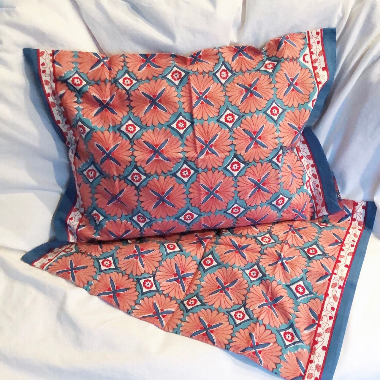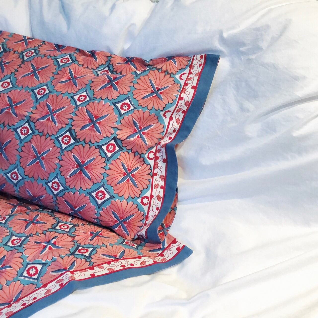 インドのハンドブロックプリント製品のブランド、ソーマの枕カバーです。