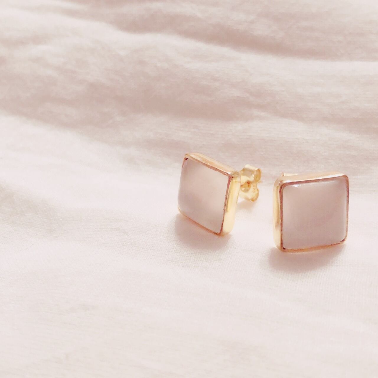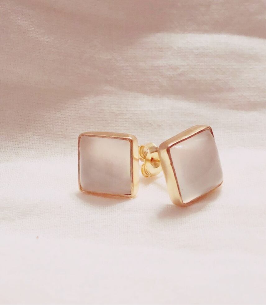 シンプルなスクエアカットですが、大粒のホワイトカルセドニーを使っているので存在感があります。