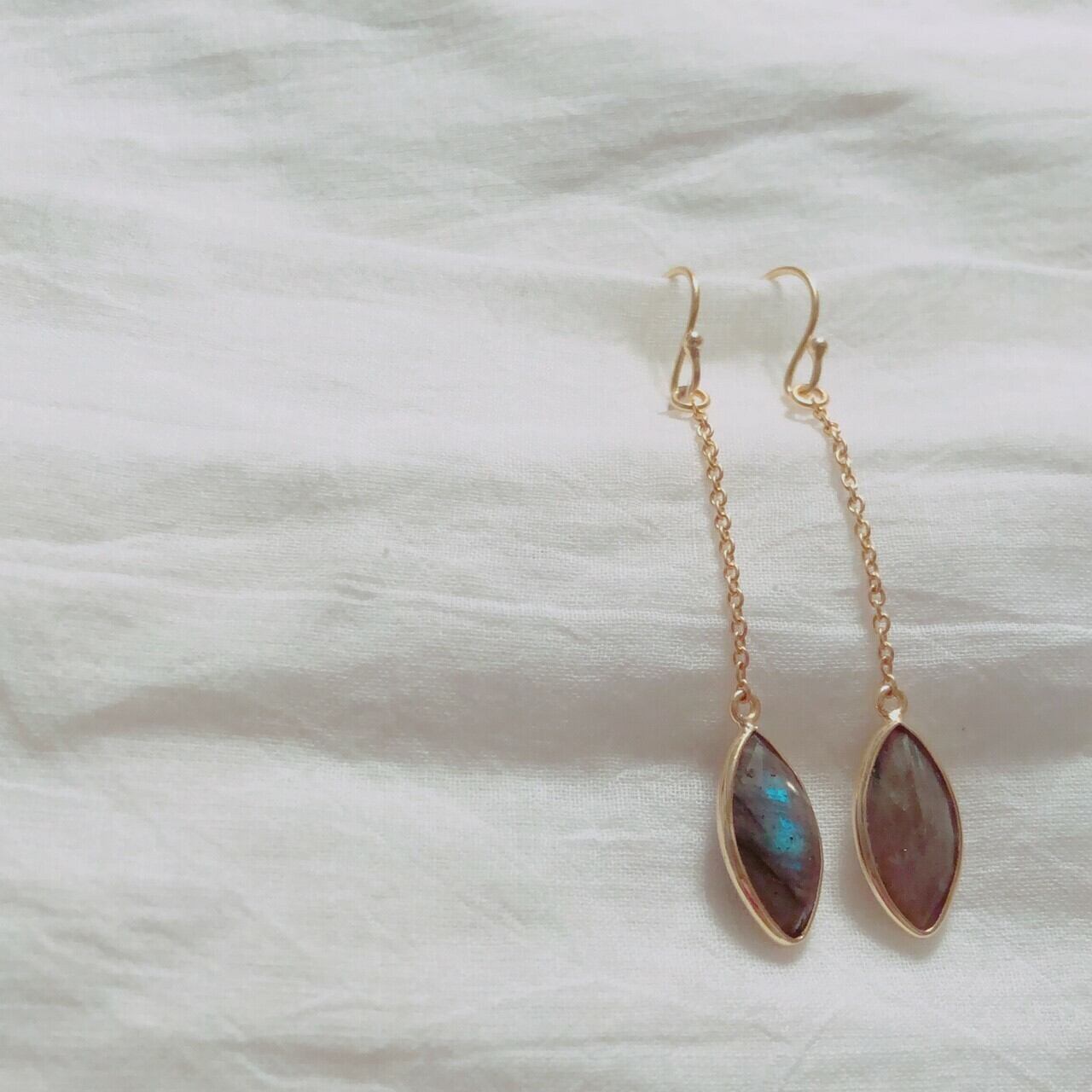 カラフルなカルセドニーがキャンディーのようで、約3cmと長めのチェーンなのでよく揺れます。