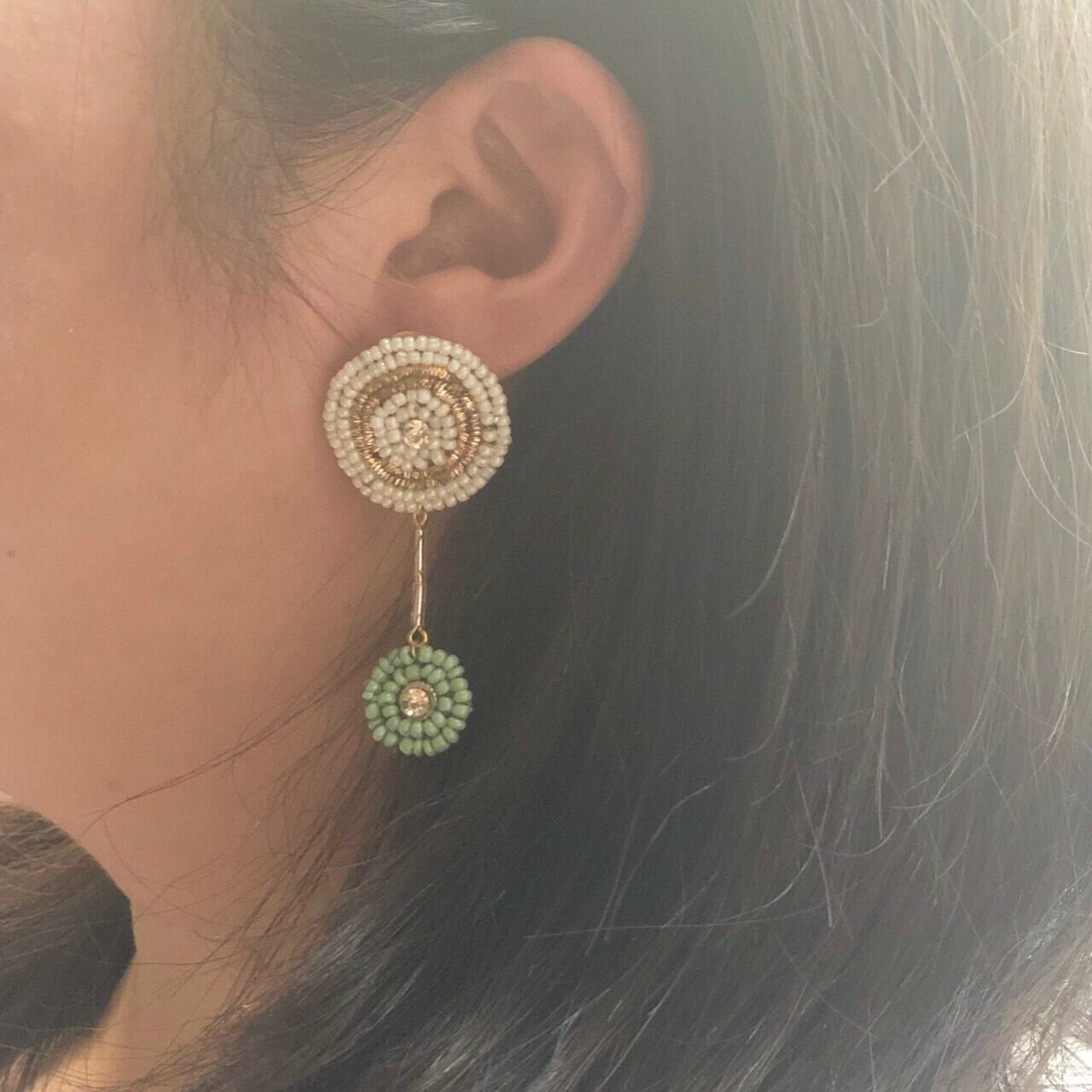 インド・オールドデリーのキナリバザールで見つけたビーズ刺繍のパーツを使ったピアスです。