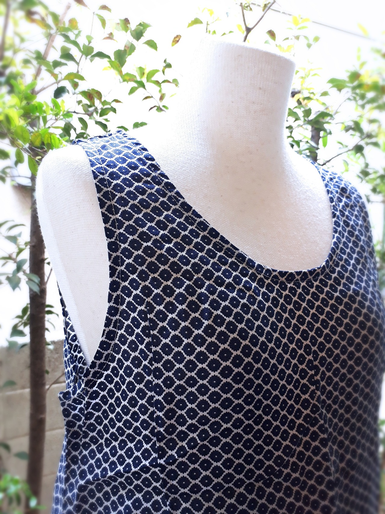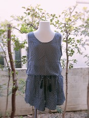 落ち着いたネイビーカラーの大人でも着られるロンパースです。